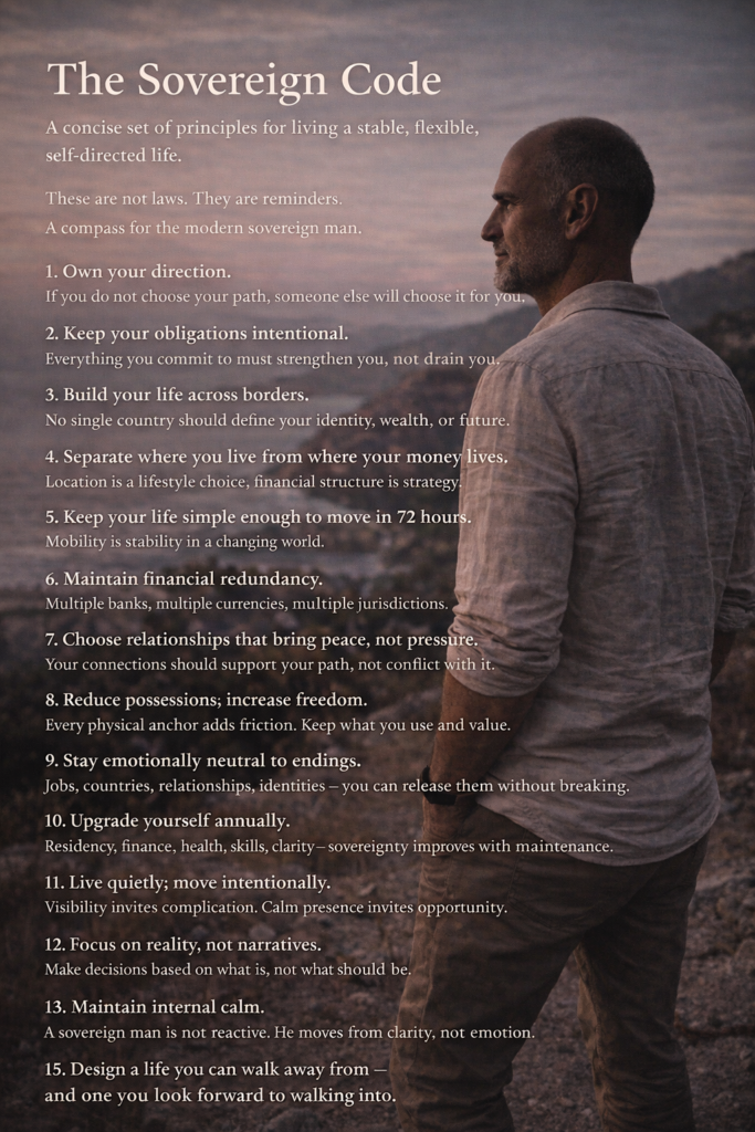 Residency, finance, health, skills, clarity — sovereignty improves with maintenance.